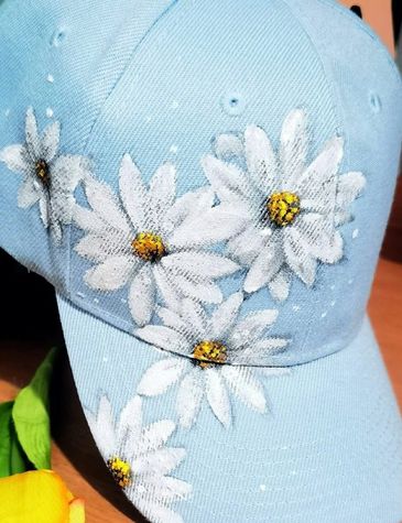 Step-by-step instructional painting class with acrylic paint. Choose a heavy-duty canvas tote bag or denim baseball cap for your canvas. Custom painted wearable art.